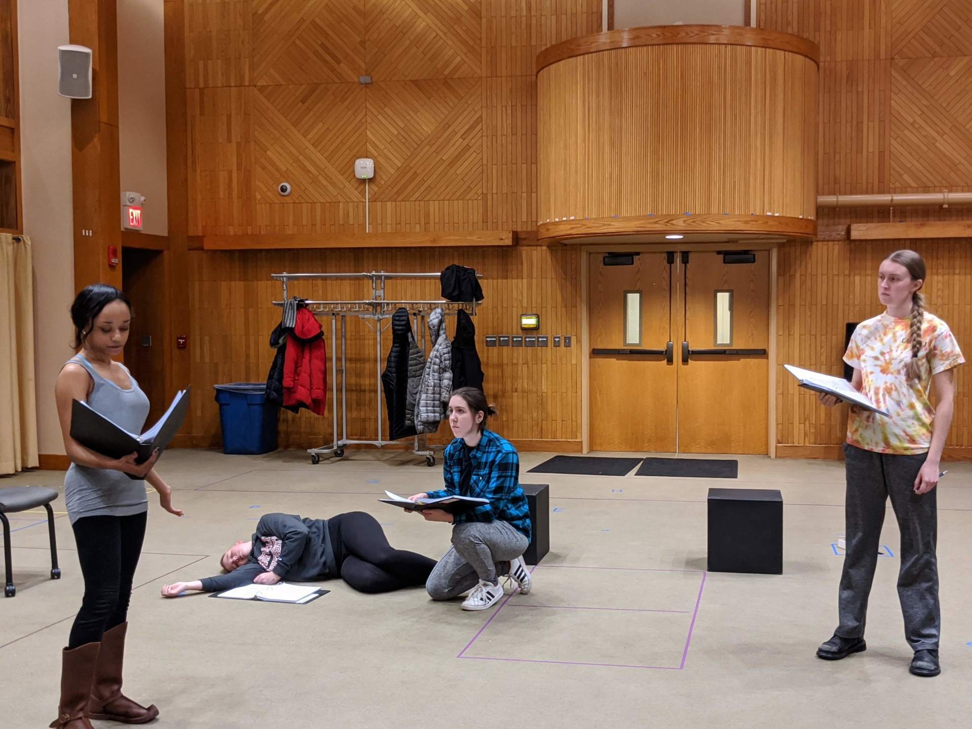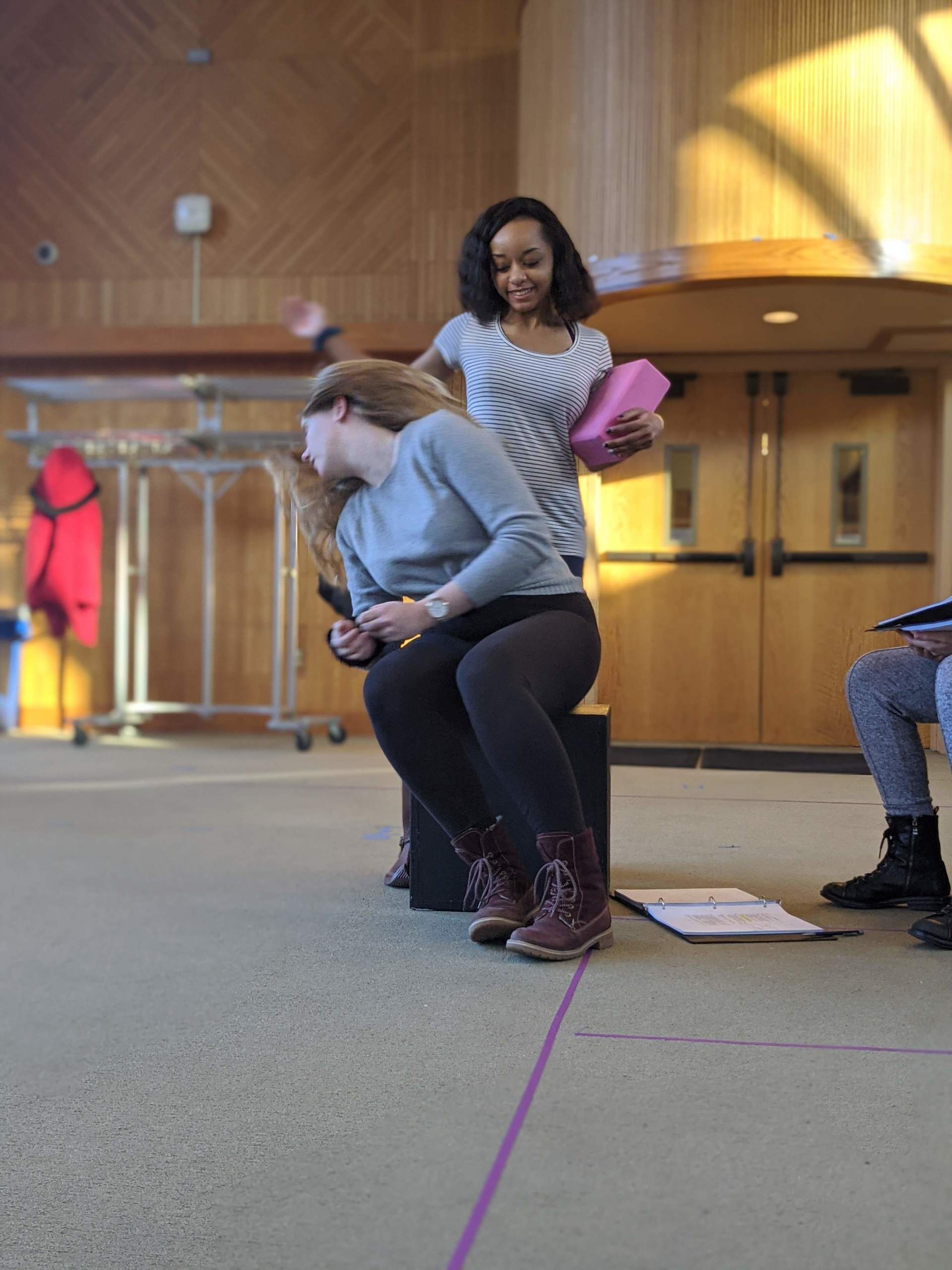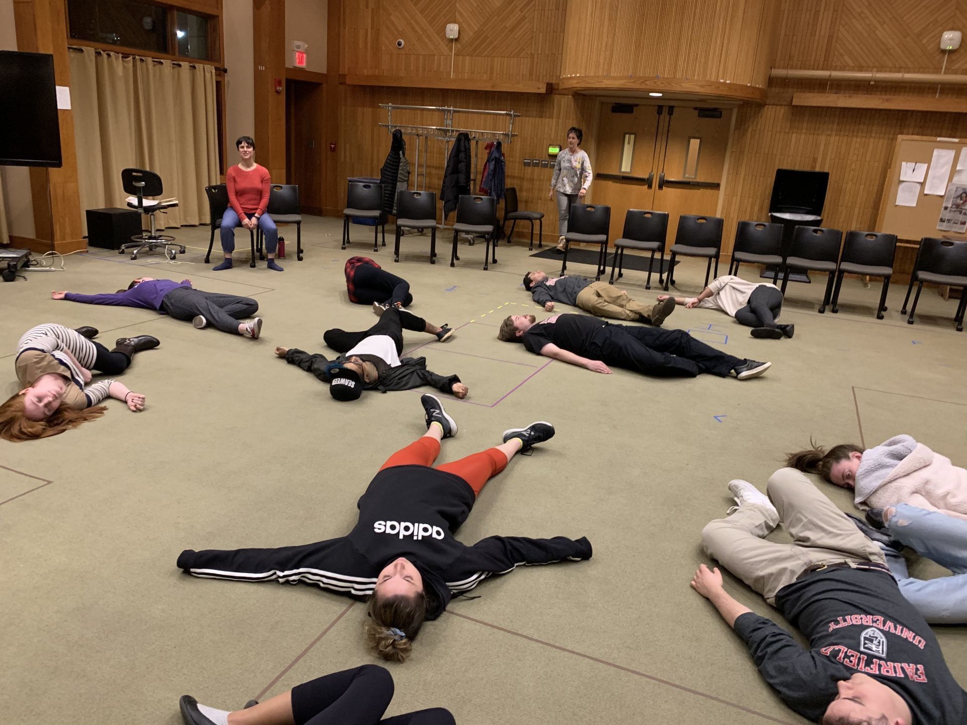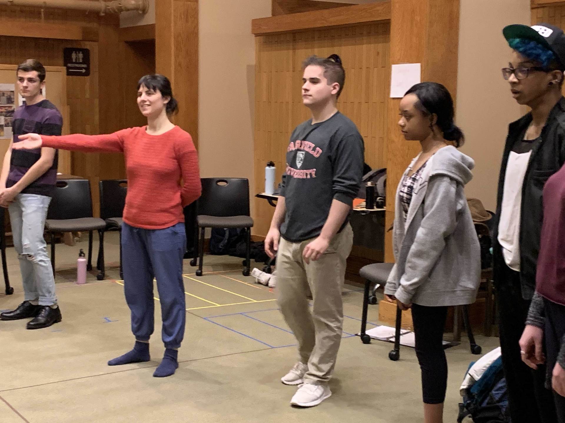 cast members participated in games and exercises exploring the principles of self-awareness and psycho-physical organization. "This helped me get rid of ‘learned habits’ - things we have taught ourselves over the years that don't help our breath, voice, or posture,” remarked one actor following the workshop. Cast members uniformly noted an eye-opening sense of freedom resulting from Tracy’s individual work with them. According to one student, “This was incredibly powerful, both experiencing it for myself and watching my classmates experience it. All of the adjustments made me and my classmates seem so much more powerful - our presence grew so much bigger.”