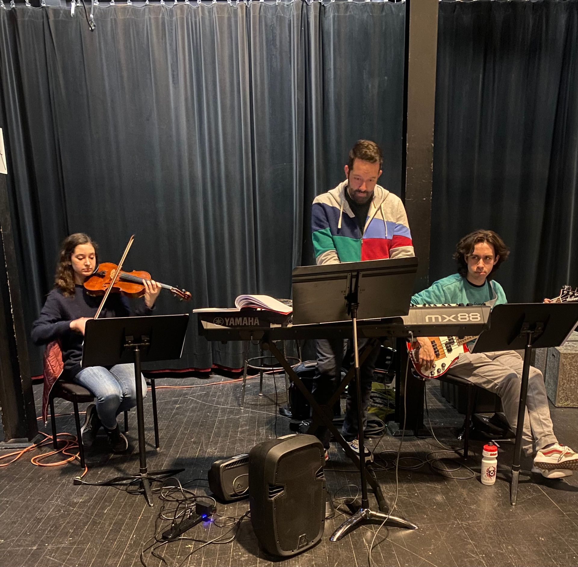 Pictured above is musical director Michael Ciavaglia, Andrew Margaritis on bass, and Elizabeth Messier on viola